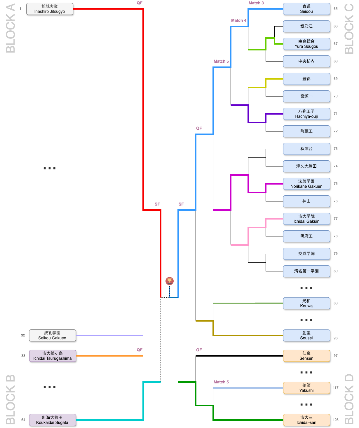 This chart was originally based on Vol 16, chapter 139, and updated to record Seidou’s progress as well as other seeded schools.